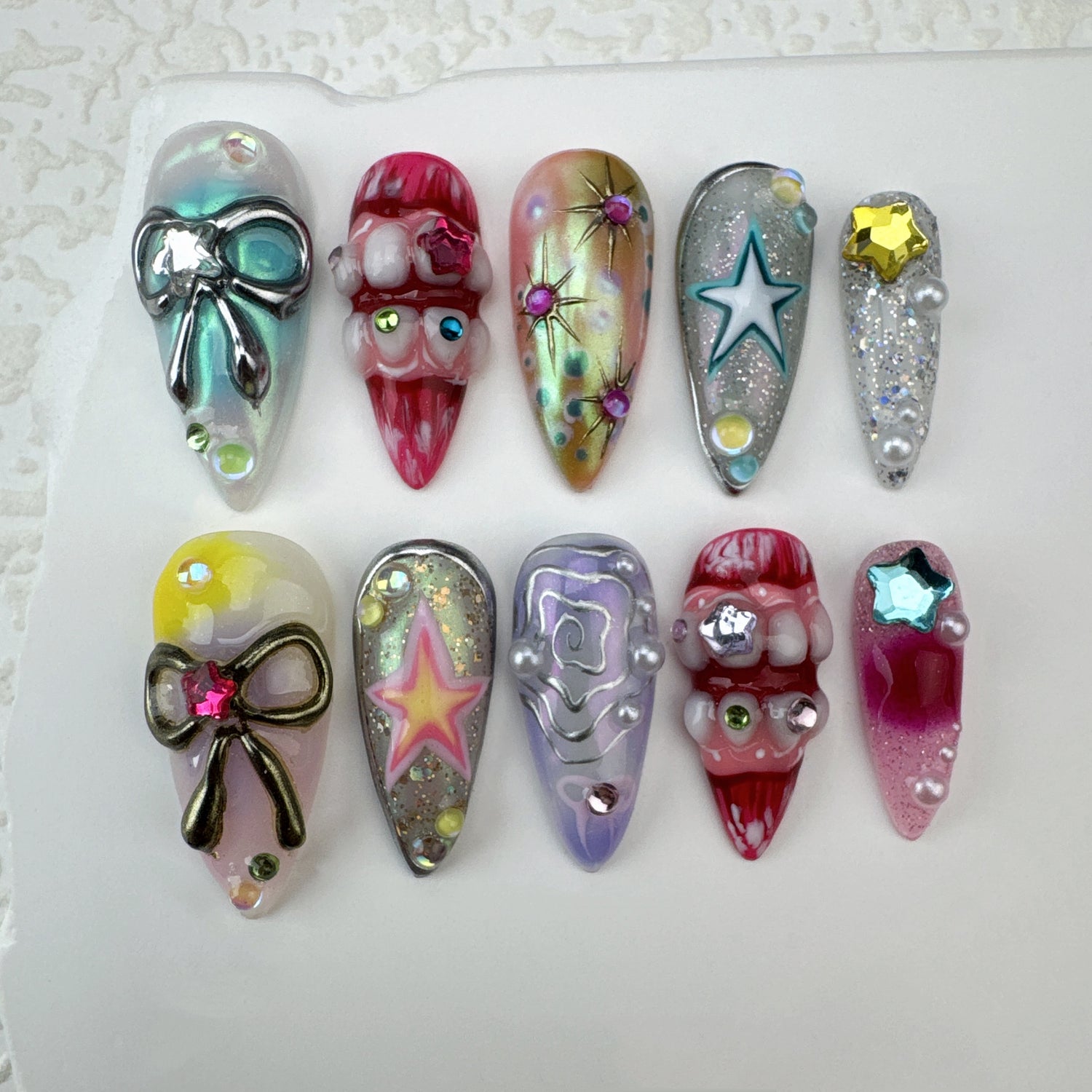3D Nails/custom press on nails/party press on nails/Flakes for nails/wedding nails gift/Japanese nails/Long nails/Almond nails 4