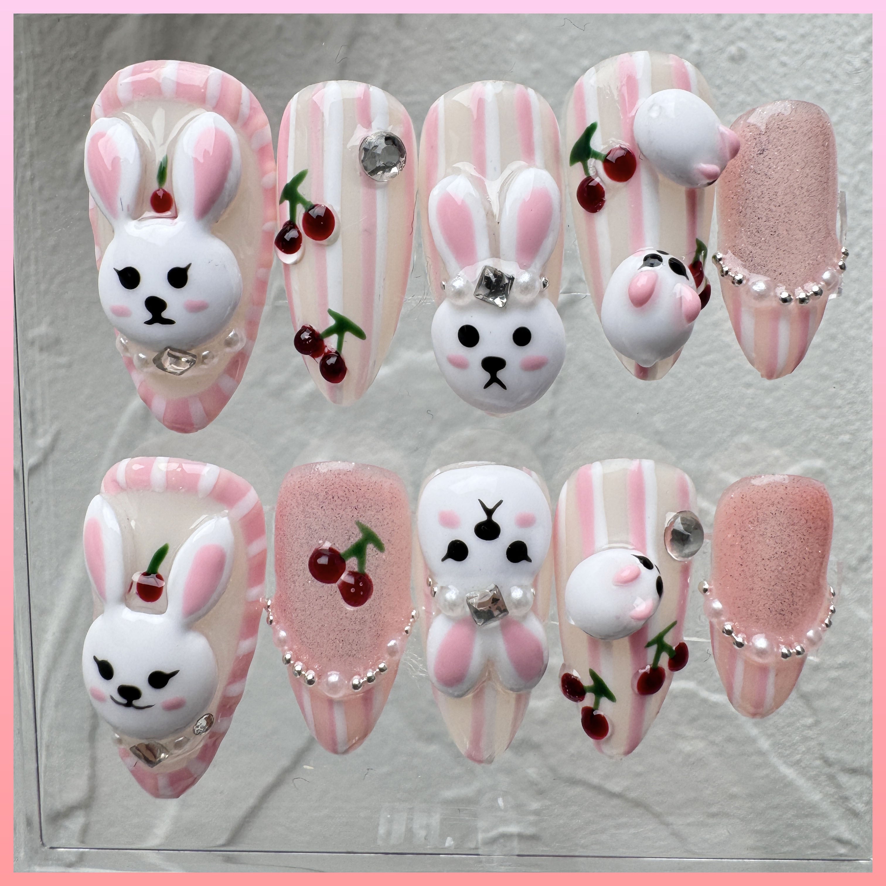 3D cute Nails/custom press on nails/party press on nails/Flakes for nails/wedding nails gift/Japanese nails/Long nails/Almond nails