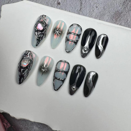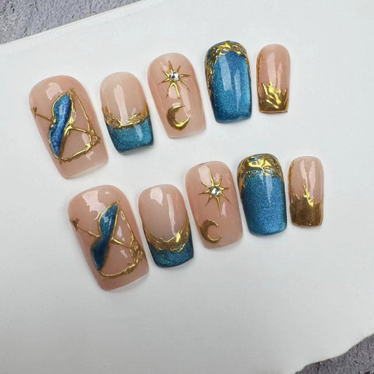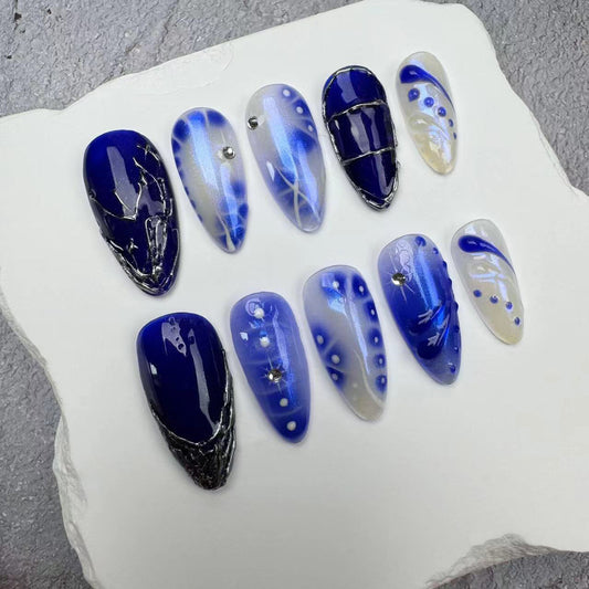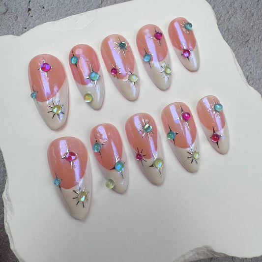 Handmade Nails/custom press on nails/party press on nails/Flakes for nails/wedding nails gift/Japanese nails/Long nails/Almond nails