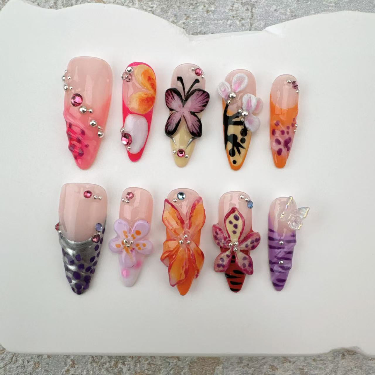 3D Handmade Nails/custom press on nails/party press on nails/Flakes for nails/Beautiful nails gift/nail art/Long nails/Almond nails