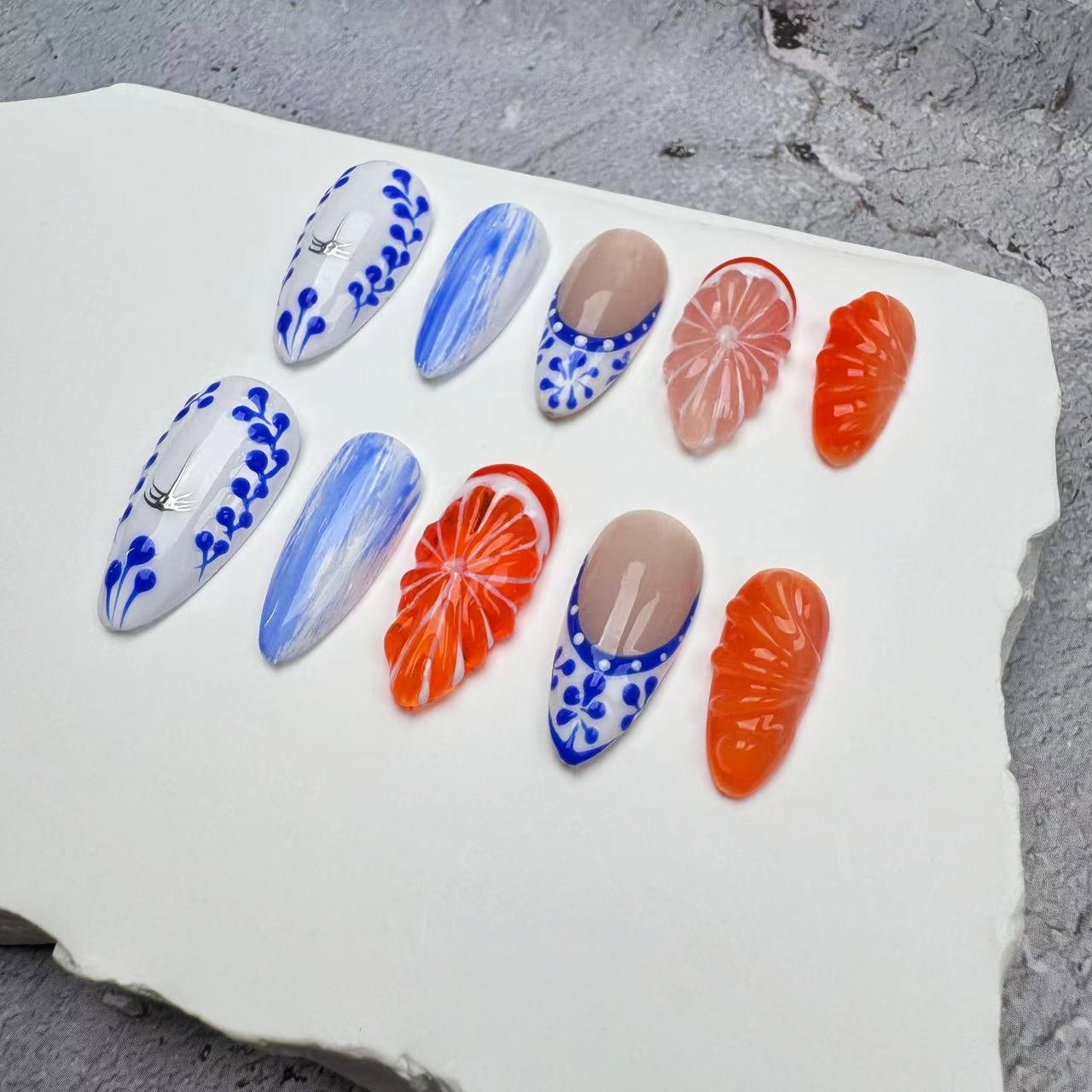 3D Nails/custom press on nails/party press on nails/Flakes for nails/wedding nails gift/Japanese nails/Long nails/Almond nails