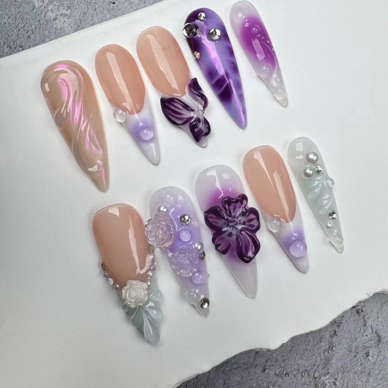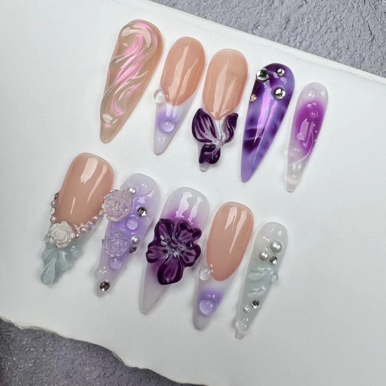 3D Nails/custom press on nails/party press on nails/Flakes for nails/wedding nails gift/Japanese nails/Long nails/Almond nails