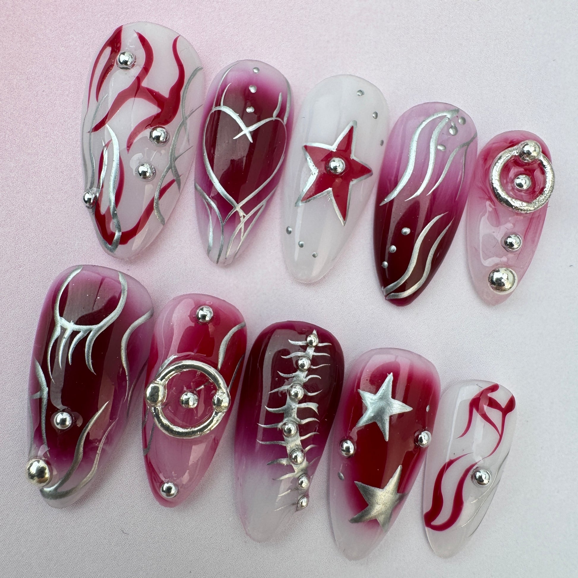 3D nature Nails/custom press on nails/party press on nails/Flakes for nails/special nails gift/amygdaloid/Long nails/Almond nails