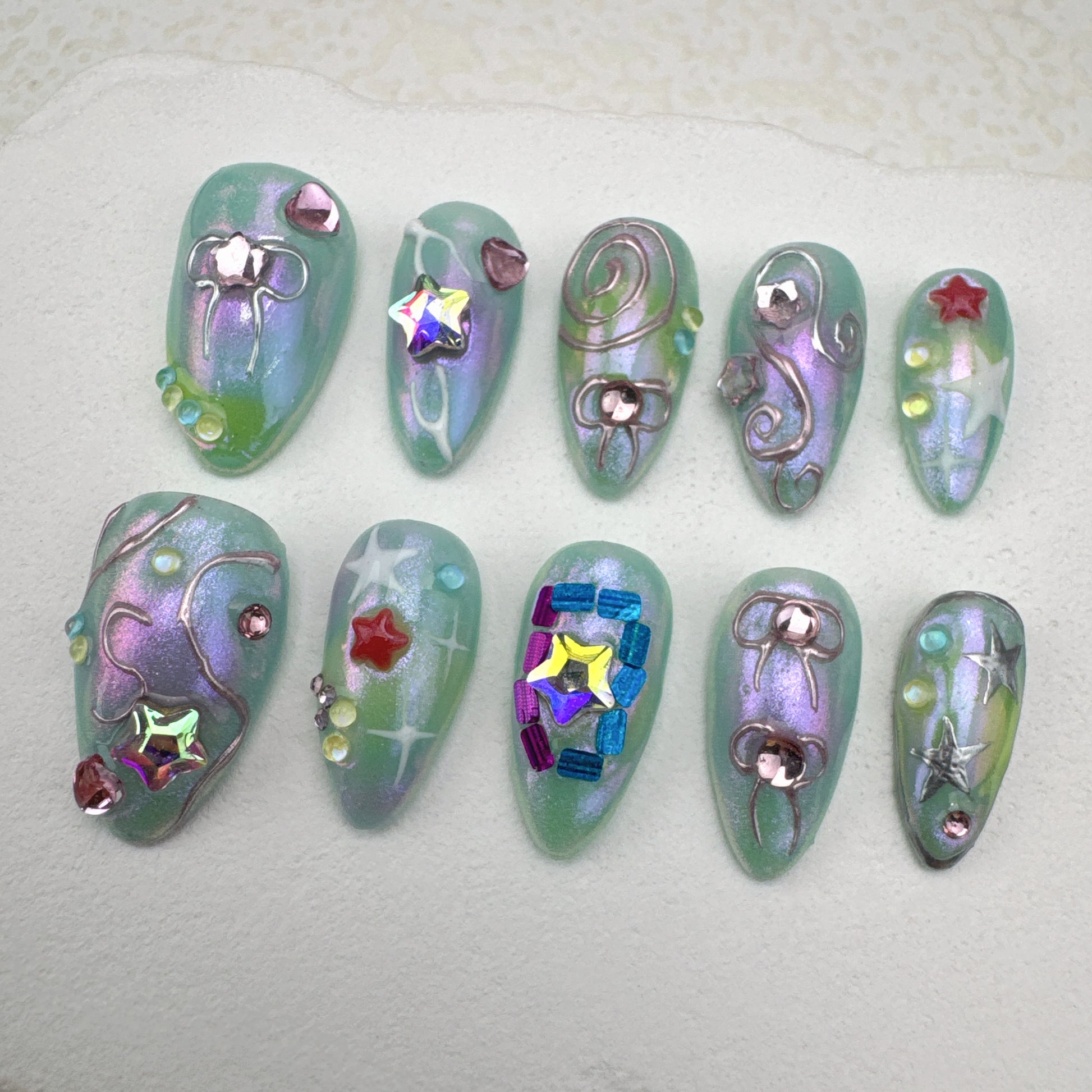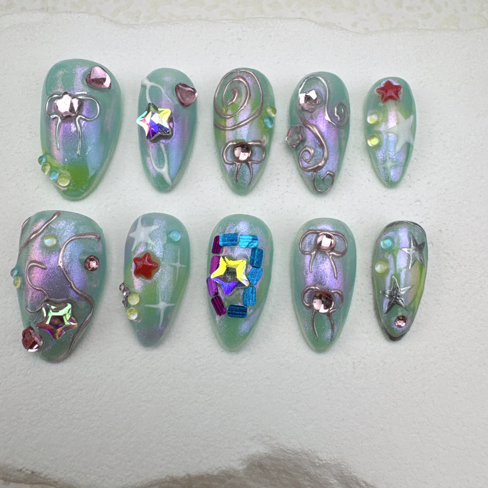 Handmade nails/custom press on nails/party press on nails/Flakes for nails/Beautiful nails gift/nail art/Long nails/Almond nails