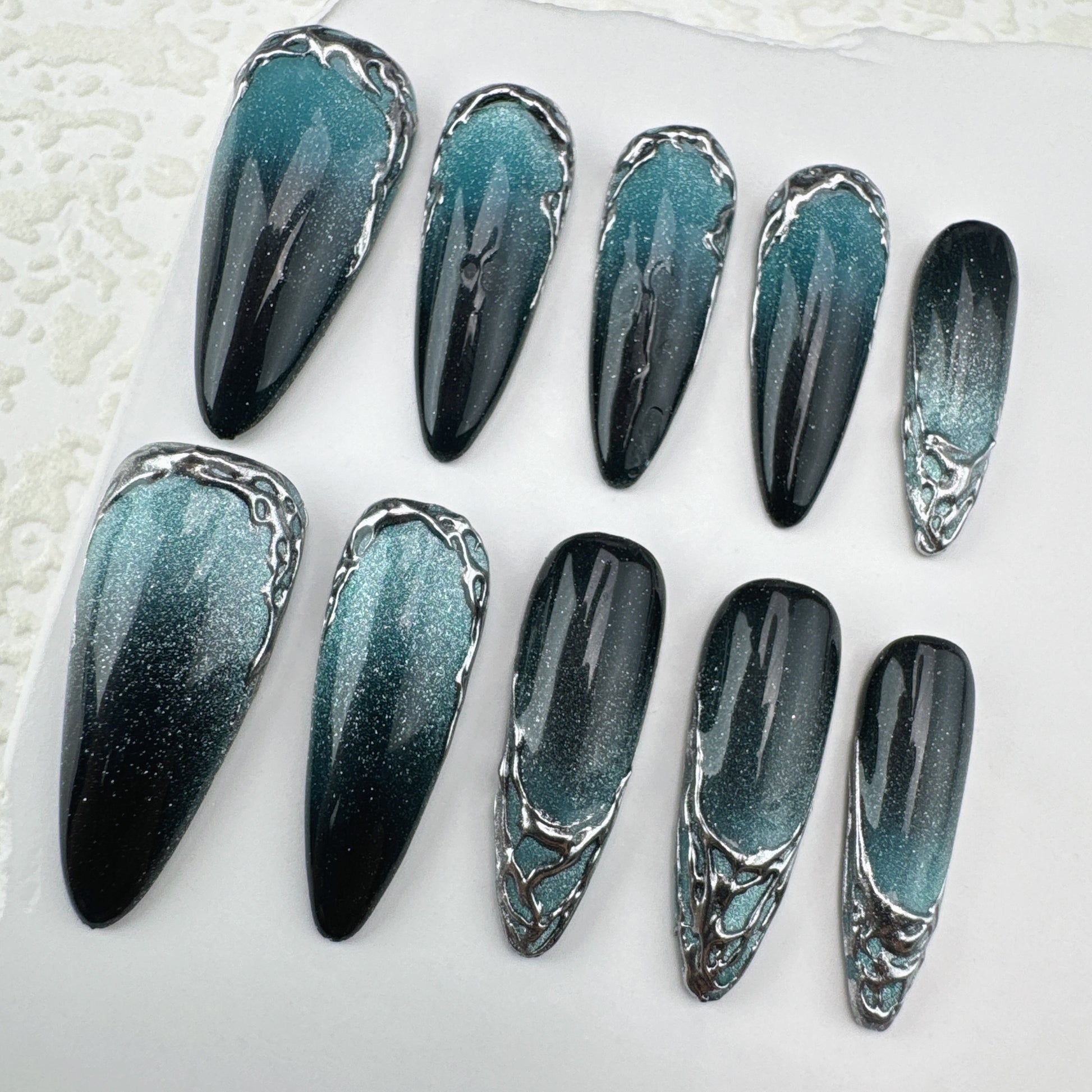 Handmade nails/custom press on nails/party press on nails/Flakes for nails/Beautiful nails gift/nail art/Long nails/Almond nails